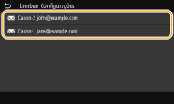 Pode selecionar um destino de entre os últimos destinos utilizados. Quando especifica um destino utilizado anteriormente, a máquina configura também as mesmas definições de digitalização (por exemplo, a densidade) que utilizou da última vez que enviou documentos para o destino em questão.