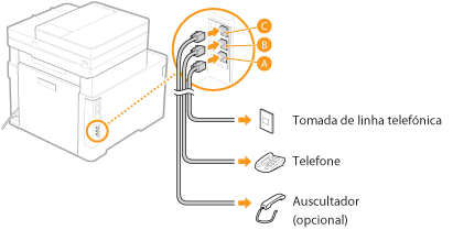 Ligue o cabo telefónico incluído à tomada de linha telefónica na máquina (