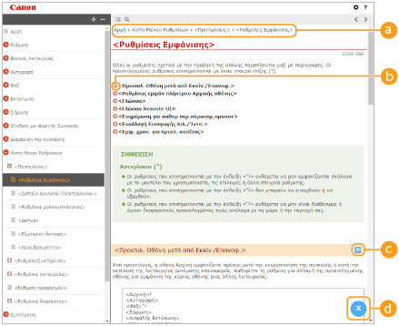 Διάταξη οθόνης του εγχειριδίου Οδηγός Χρήστη