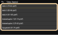 Δεν εμφανίζεται η οθόνη που απεικονίζεται πιο πάνω όταν έχει τοποθετηθεί χαρτίΕάν τοποθετείτε πάντα το ίδιο χαρτί στον δίσκο πολλαπλών χρήσεων, μπορείτε να παρακάμψετε τις ενέργειες ρύθμισης χαρτιού, καταχωρίζοντας το μέγεθος και τον τύπο χαρτιού ως προεπιλεγμένη ρύθμιση. Ωστόσο, όταν έχει καταχωριστεί η προεπιλεγμένη ρύθμιση, δεν εμφανίζεται η οθόνη που απεικονίζεται πιο πάνω. Για να εμφανίσετε την οθόνη, επιλέξτε <Ορίστε το Χρόν Τοποθ Χαρτ> (Καταχώριση προεπιλεγμένων ρυθμίσεων χαρτιού για τον δίσκο πολλαπλών χρήσεων).