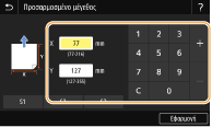 Επιλέξτε <X> ή <Y> και εισαγάγετε το μήκος κάθε πλευράς, χρησιμοποιώντας τα αριθμητικά πλήκτρα.
