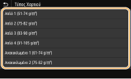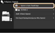 Αφού καταχωριστεί η προεπιλεγμένη ρύθμιση χαρτιού, η οθόνη ρύθμισης χαρτιού δεν εμφανίζεται όταν τοποθετείται το χαρτί, και χρησιμοποιείται πάντα η ίδια ρύθμιση. Εάν τοποθετήσετε διαφορετικό μέγεθος ή τύπο χαρτιού χωρίς να αλλάξετε τις ρυθμίσεις χαρτιού, η συσκευή ενδέχεται να μην εκτυπώνει σωστά. Για να αποφύγετε αυτό το πρόβλημα, επιλέξτε <Ορίστε το Χρόν Τοποθ Χαρτ> στο βήμα 3 και, στη συνέχεια, τοποθετήστε το χαρτί.
