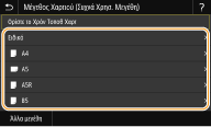 Αν καταχωρήσετε το μέγεθος του χαρτιού που χρησιμοποιείτε συχνά στα πλήκτρα <S1> έως <S3>, μπορείτε να τα εμφανίζετε με το πάτημα ενός πλήκτρου. Καταχώριση χαρτιού ειδικού μεγέθους
