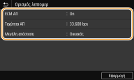 Μπορείτε επίσης να ορίσετε <ECM ΑΠ> και <Ταχύτητα ΑΠ> από το <Μενού>