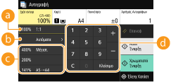 Μπορείτε να μεγεθύνετε ή να σμικρύνετε τα αντίγραφα χρησιμοποιώντας μια ειδική κλίμακα αντιγραφής ή ρυθμίζοντας μια προσαρμοσμένη κλίμακα αντιγραφής σε βήματα του 1%.