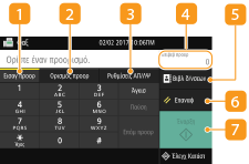 Εάν επιλέξετε <Φαξ> στην οθόνη Αρχική, προβάλλεται η οθόνη Βασικών λειτουργιών ΦΑΞ που εμφανίζεται όταν στέλνετε φαξ.