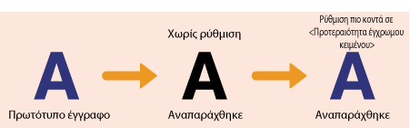 Το μαύρο ή σχεδόν μαύρο κείμενο αναπαράγεται με χρώμα που προσεγγίζει το πρωτότυπο.