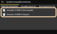 Επιλέξτε το έγγραφο την κατάσταση του οποίου θέλετε να ελέγξετε στην καρτέλα <Κατάστ Εργ Αντιγρ/Εκτύπ>.