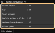 Για αρχεία PDF, μπορείτε να εκτυπώσετε 9 ή 16 σελίδες δεδομένων εικόνας στη μία πλευρά ενός φύλλου χαρτιού χρησιμοποιώντας την επιλογή <N σε 1> στο <Ορισμός Λεπτομ. PDF>.