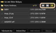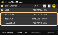 Εάν επιλέξετε <Ημ/νία/Ώρα (Αύξουσα)> ή <Ημ/νία/Ώρα (Φθίνουσα)>, τα αρχεία ταξινομούνται βάσει των ημερομηνιών και της ώρας τροποποίησης των αρχείων.