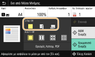 Η ρύθμιση <Εκτύπωση 2-Όψεων> ενδέχεται να μην είναι διαθέσιμη για ορισμένα μεγέθη και τύπους χαρτιών. Διαθέσιμοι τύποι χαρτιού