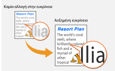 Μπορείτε να ρυθμίσετε την ευκρίνεια της εικόνας. Αυξήστε την όξυνση για να οξύνετε θαμπό κείμενο και θαμπές γραμμές ή μειώστε την όξυνση για να βελτιώσετε την εμφάνιση των φωτογραφιών περιοδικού.