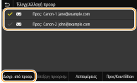 Για να διαγράψετε προορισμούς (email/I-Φαξ)