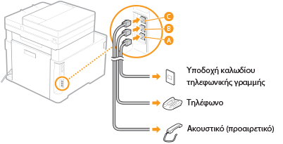 Εάν χρησιμοποιείτε τηλέφωνο ή τηλεφωνητή, συνδέστε το στην υποδοχή εξωτερικού τηλεφώνου (