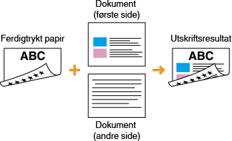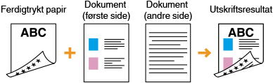 Denne delen beskriver hovedsakelig hvordan du legger inn ferdigtrykt papir med riktig side opp og retning. For en beskrivelse av den generelle prosedyren for å legge inn flerfunksjonsskuffen, kan du se Legge papir i papirskuffen eller Legge papir i flerfunksjonsskuffen. |