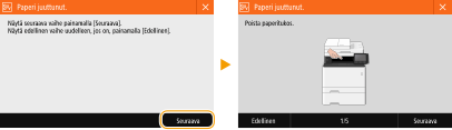 Joissakin tapauksissa, kun tapahtuu virhe, näytetään ohjeet virheen korjaamiseksi. Ratkaise ongelma noudattamalla näyttöön tulevia ohjeita. Alla näytetään esimerkkinä näyttö, joka tulee esiin, kun tapahtuu paperitukos.