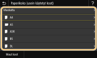 2 | Määritä <X>-sivun ja <Y>-sivun pituus. Valitse <X> tai <Y> ja syötä kunkin sivun pituus numeronäppäimillä. ![]() ![]() Jos usein käytettävä paperikoko tallennettiin painikkeisiin <S1>–<S3>, ne voidaan palauttaa yhdellä kosketuksella. Mukautetun paperikoon tallentaminen |
