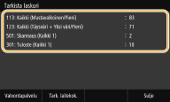 Näyttää kopioitujen ja tulostettujen sivujen kokonaismäärän.