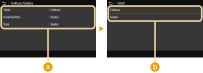 Kun asetukseksi <Väriaineen säästö> on valittu <Kyllä>, tätä kohdetta ei voi asettaa.