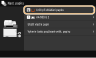 Jakmile je výchozí nastavení papíru uloženo, přestane se po vložení papíru zobrazovat obrazovka nastavení papíru a zařízení použije vždy toto nastavení. Pokud do zařízení vložíte jinou velikost nebo typ papíru a nezměníte nastavení papíru, nemusí zařízení tisknout správně. Chcete-li tomuto problému předejít, vyberte v kroku 3 možnost <Určit při vkládání papíru> a poté vložte papír.