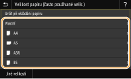Jestliže si velikosti papíru, které často používáte, uložíte pod tlačítka <S1> až <S3>, můžete je vyvolat jediným dotekem. Uložení vlastní velikosti papíru