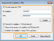 [Potvrdit ID oddělení/PIN při tisku]/[Potvrdit ID oddělení/PIN při odesílání faxu]