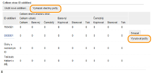 Chcete-li nastavit počet opět na nulu, klikněte na příslušný textový odkaz pod [ID oddělení] a klikněte na [Vynulovat počty]  [OK]. Chcete-li nastavit počet na nulu pro všechna ID oddělení, klikněte na [Vymazat všechny počty]  [OK].