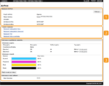 Pokud vyberete [Použít AirPrint], následující nastavení v části <Síť> se nastaví na <Zapnuto>.Použít HTTP