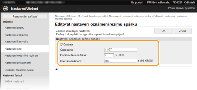 Políčko zaškrtněte, chcete-li software pro správu zařízení upozorňovat na stav napájení zařízení. Když je zaškrtnuto políčko [Oznámit], můžete očekávat, že nebude docházet k nepotřebné komunikaci zařízení během režimu spánku a sníží se celková spotřeba energie. [Číslo portu]