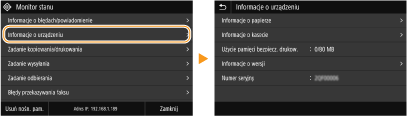 Istnieje możliwość zmiany ekranu wyświetlanego automatycznie, gdy urządzenie pozostaje bezczynne przez określony czas: <Funkcja po autom. on. uruchomieniu>