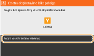 Jei aparatui priimant faksogramą / internetinę faksogramą arba esant nustatytai automatinei ataskaitų išvesčiai rodomas pranešimas, gautos faksogramos / internetinės faksogramos ir ataskaitos bus išsaugomos atmintyje, kad išspausdinus neatrodytų išblukusios. Jei norite toliau spausdinti, net jei liko mažas kiekis dažomųjų miltelių, <Tęsti spausd. kai maž. rašalo> nustatykite kaip <Įjungta>. <Tęsti spausd. kai maž. rašalo>