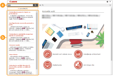 Kliknite da biste prikazali informacije o tome kako pregledati Korisnički vodič, kako pretraživati itd.