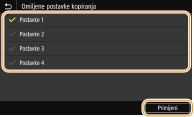 Potvrdite okvir za sve postavke koje će se prikazati na zaslonu Početni zaslon i dodirnite <Primijeni>.