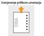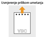 U ovom se odjeljku većim dijelom opisuje umetanje već ispisanog papira s pravilno okrenutom stranom i usmjerenjem. Opis općenitog postupka umetanja papira u ladicu za papir ili višenamjensku ladicu potražite u odjeljcima Umetanje papira u ladicu za papir ili Umetanje papira u višenamjensku ladicu.
