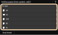 Ako registrirate veličine papira koju često koristite na gumbima od <S1> do <S3>, možete ih odabirati dodirom. Registriranje prilagođene veličine papira