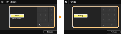 Adresar je moguće postaviti tako da od korisnika traži unos PIN-a pri dodavanju novih unosa u adresar ili uređivanju postojećih unosa. Postavljanje PIN-a za adresar može smanjiti rizik od slanja dokumenata osobama kojima nisu namijenjeni jer unose u adresaru mogu mijenjati samo korisnici koji znaju PIN.
