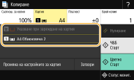 ![]() | Можете да копирате две страници на оригинал върху двете страни на лист хартия. Можете също да копирате двустранен оригинал върху двете страни на хартията или върху два листа хартия. |