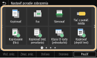 Môžete pridať tlačidlá skratiek na obrazovku Domov pre často používané funkcie, ako je <Kopírovať>, <Fax> a <Skenovať>. Napríklad môžete vykonávať úlohy rýchlejšie a efektívnejšie priradením sekvencie nastavení (napríklad Skenovať obe strany originálu, uložiť ich ako vysoko skomprimovaný súbor PDF a odoslať ho e-mailom) jednému tlačidlu.