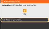 Ak sa správa zobrazí pre čiernu kazetu s tonerom, keď zariadenie prijíma fax/I-Fax alebo sa nastavuje výstup automatického hlásenia, prijaté faxy/I-Faxy a hlásenia sa uložia v pamäti, aby po tlači nevyzerali vyblednuté. Ak chcete pokračovať v tlači, aj keď je množstvo zostávajúceho tonera v kazete s tonerom nízke, nastavte položku <Pokr. v tlači pri níz. hlad. v kaz.> na možnosť <Zap.>. <Pokr. v tlači pri níz. hlad. v kaz.>