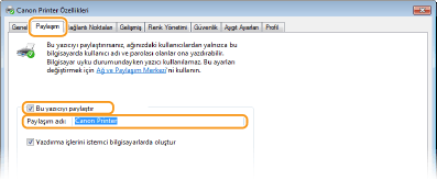 Bir yazdırma sunucusu kullanırken Departman Kimliği Yönetimini yürütmek içinYazıcı sürücüsü kurulumu sırasında "Canon Driver Information Assist Service" eklenmelidir. Daha fazla bilgi için çevrimiçi kılavuz sitesindeki ilgili sürücülerin kılavuzlarına bakın.