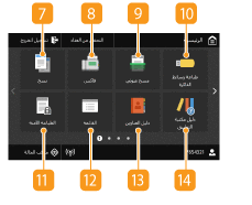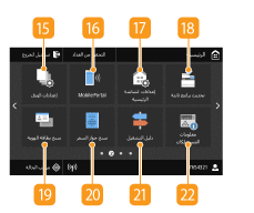 في لوحة التشغيل. استخدم هذه الشاشة لتحديد الإعدادات وتسجيل الوظائف.