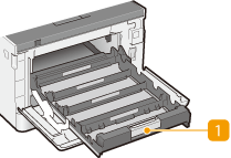 قم بتركيب عبوة الحبر. قم بتحميل عبوات الحبر Y (الأصفر) و M (الأحمر الأرجواني "ماغينتا") و C (الأخضر المزرق "سيان") و K (الأسود) في الفتحات على التوالي، بدءًا بالفتحة الخلفية وانتهاء بالفتحة الأمامية.