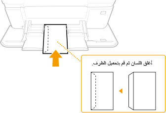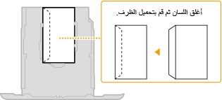 يصف هذا القسم كيفية تحميل الأظرف في الاتجاه الذي تريده، بالإضافة إلى الإجراءات التي يتعين عليك إتمامها قبل تحميل الأظرف. وللحصول على وصف للإجراء العام الخاص بتحميل الأظرف في درج الورق أو في علبة الورق متعددة الأغراض، راجع تحميل الورق في درج الورق أو تحميل الورق في علبة الورق متعددة الأغراض.