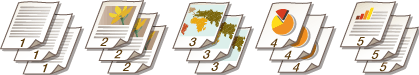 عند إعداد نسخ متعددة من مستندات أصلية متعددة الصفحات، اضبط <ترتيب> على <تشغيل> لترتيب النسخ بترتيب الصفحات التسلسلي. وتعتبر هذه الوظيفة مفيدة عند إعداد المطبوعات للاجتماعات أو العروض التقديمية.