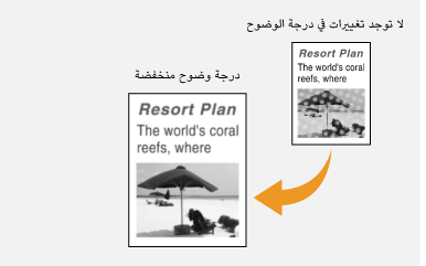 يمكنك تحديد الدقة المناسبة لنوع المستند الأصلي. كلما أصبحت الدقة عالية، أصبحت الصورة أوضح ويستغرق وقتًا أطول في الإرسال. تحديد الدقة