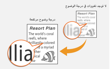 يمكنك ضبط حدة الصورة. قم بزيادة الحدة لتحسين النصوص والخطوط الباهتة أو تقليلها لتحسين مظهر صور المجلات. ضبط الوضوح