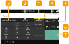 يؤدي تحديد <فاكس> في الشاشة الرئيسية إلى عرض شاشة الميزات الأساسية للفاكس التي تظهر عندما تقوم بإرسال الفاكسات.