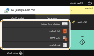 في حالة تحديد وجهة من <دليل العناوين> في الشاشة الرئيسية، يمكن عرض شاشة الميزات الأساسية لإرسال فاكس الإنترنت فيما تظل الوجهة المختارة قيد التحديد.