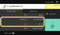 حدد <الموضوع/الرسالة> في علامة التبويب <إعدادات الإرسال>.