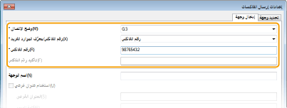 [Add Outside Dialing Prefix to G3/G4/IP Fax Number] وأدخل الرقم في [بادئة الاتصال الخارجي]. تتم إضافة الرقم المحدد إلى بداية رقم الفاكس عندما يتصل الجهاز.